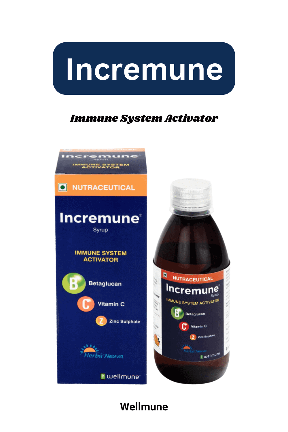 Incremune Syrup contains the benefits of beta-glucan - wellmune. It helps improve immune health and helps maintain overall physical health. This formula has the added benefits of vitamin C and zinc. It helps build up immunity against cough, cold and recurrent infections. Incremune protects the skin against environmental irritants. It helps relieve redness and other symptoms of sensitive skin.